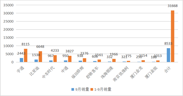 2017年9月及前三季度新能源公交客车销售数据解读