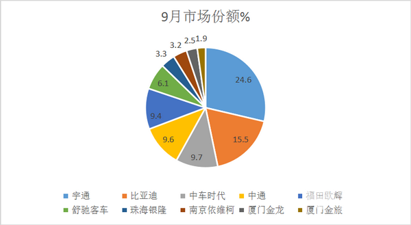 - 9月客车终端市场:中客电动化率最高 宇通\江铃分获大中客\轻客冠军
