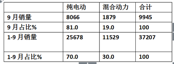 2、混合动力客车占据的权重只有19%。