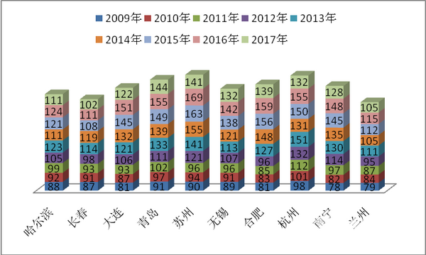 3.从这十大二线城市的分布区域来看,有西北的、也有东北的、还有东南沿海的、也有中部地区的,总体来看基本能代表全国二线城市的情况,因此有一定的广泛代表性。