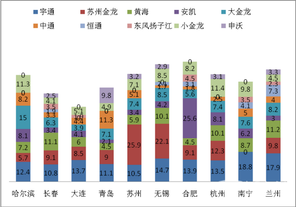 哈尔滨等十大二线城市10-11米公交市场五大特点剖析