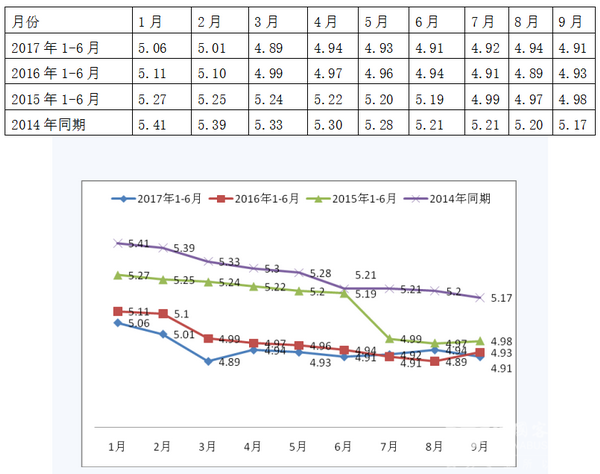 1、2017年前三季度的1-9月,LNG公交客车与公路客车的销量比指每月均大于4.9,并且从4月后各月比值逐渐趋向平稳(均在4.91-4.93之间)。