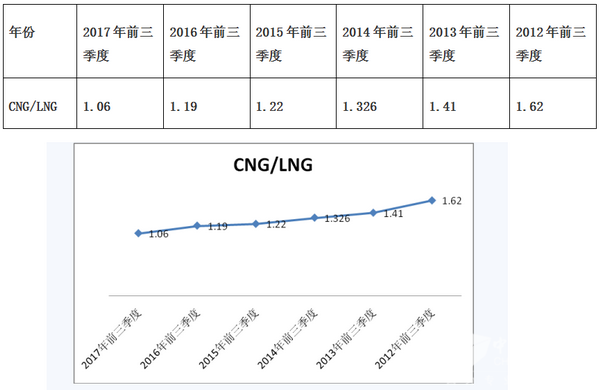 1、近6年前三季度CNG客车与LNG客车的销量比值从2012年的1.62逐年下降到2017年的1.06,充分说明近6年的燃气类客车市场在发展过程中,CNG的发展速度相对LNG来说较为缓慢,换句话说,目前燃气类客车产品由CNG客车向LNG客车加速过渡,构成 NG类客车的市场结构比例正在发生改变。原因如下: