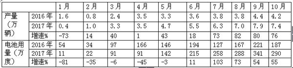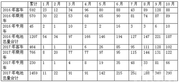 一、2017年1-10月各月新能源汽车电池用电量数据分析