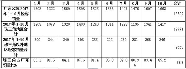 2017年1-10月广东地区轻客市场研析