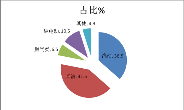 特点三、柴油是主要动力,汽油其次---按动力种类划分对广东区域2017年1-10月轻客销量结构分析