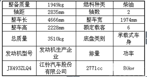 江铃全顺JX6477DA-M主要技术参数