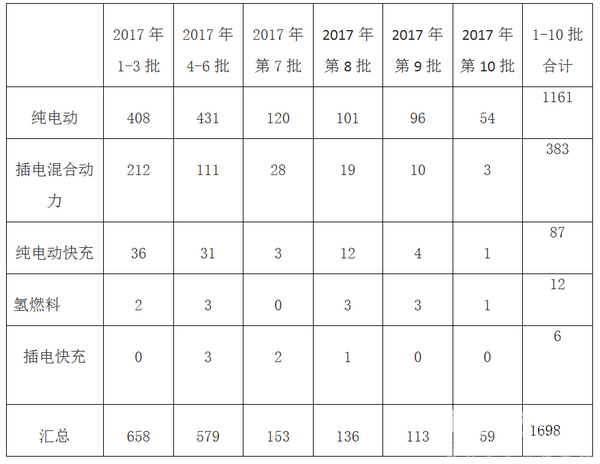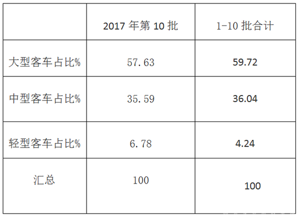 2017年第10批及1-10批新能源客车推荐目录分析