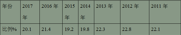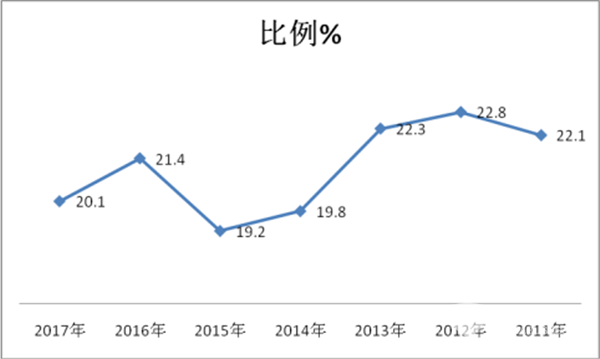 点评二、可以说11-12米大型公路客车占据公路客车市场的比例近年来是一波三折,跌宕起伏。前5年11-12米公路客车占据公路客车的比例由小变大,又由大变小,高铁动车对大型公路客车的影响比较明显,到2017年又变小。11-12米大型公路客车占据公路客车的市场比例从2011年的22.1%升高到2012年的22.8%,然后又逐年降低到2015年的19.2%,而且降至近7年来最低点,2016年又恢复性增大到21.4%,2017年又下降到20.1%,