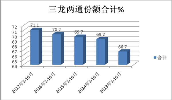 近5年1-10月三龙两通公路客车市场份额统计表%