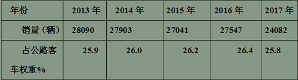 点评五:近年7-9米中型公路客车权重一直在上升,但到2017年前10月出现拐点