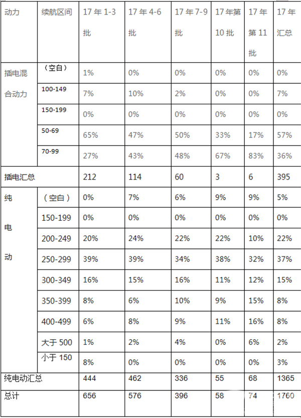2、第11批新能源客车推荐目录中,插电混合动力客车申报的续航里程显然比第10批提高了很多。上表数据具体表明:插电式混合动力客车续航里程在70-99区间占比达到83%,且比第10批提高近16个百分点,也说明申报新能源客车目录的客车企业在电池的续航能力方面是下了大气力的。