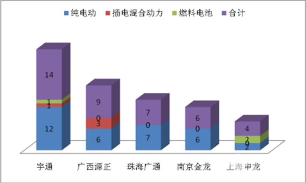 其中,5款燃料电池产品分别配套给郑州宇通(1)、上海申龙(2)、佛山飞驰(2)。