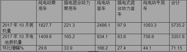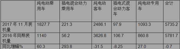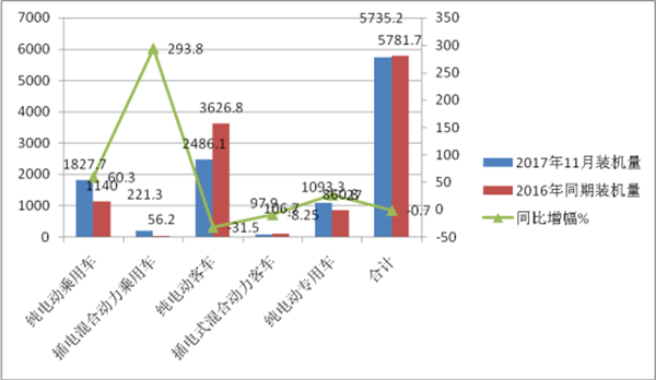 1、2017年11月各类新能源汽车电装机量统计分析表(MWh)