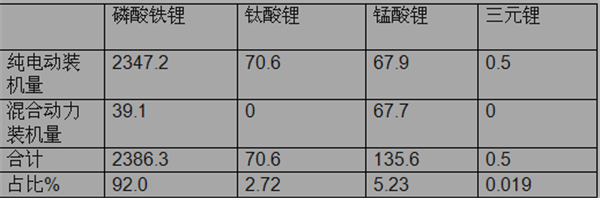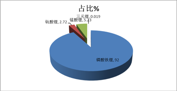 特征三:新能源客车中,2017年11月磷酸铁锂电池装机量占比最大,占比为92.0.%,比例之高超过2017年前10月的任何一个月份;其次是锰酸锂电池,再次钛酸锂,三元电池占比很小
