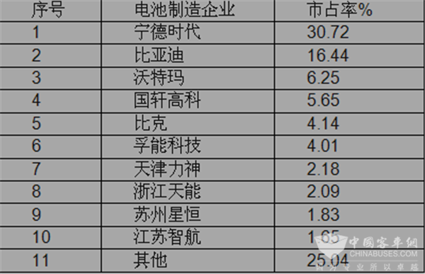 特征四:1-11月新能源电池装机量中,宁德时代处于老大,市场占有率超过30%