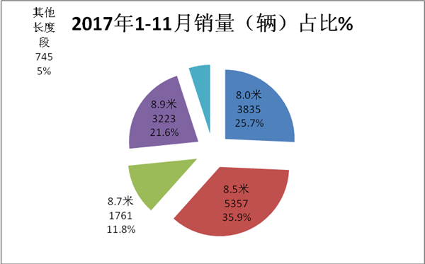 2017年1-11月8-9米段中细分各长度段的公路客车销量统计,(表4)