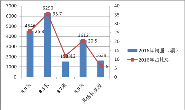 特点四、细分8-9米公路客车长度段,8.5米左右长度段销量最大,且同比上升,其次是8.0米,但同比下降,再次是8.9米,同比上升,最少的是8.7米;同比减少