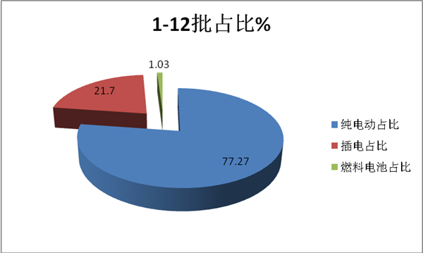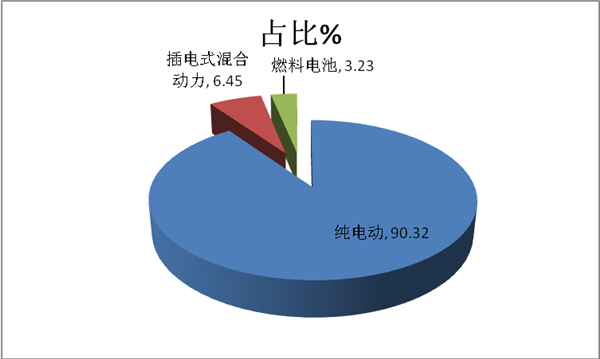 解读一:第12批新能源客车推荐目录中,纯电动占据90.32%,插电式混合动力占据6.45%,燃料电池占据3.23%;纯电动客车占比继续升高,插电式混合动力客车占比下降明显。