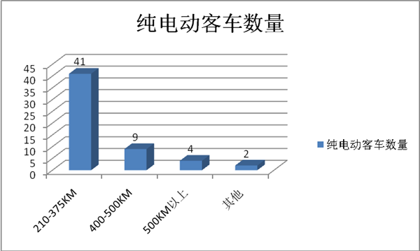 解读四:续航里程加大趋势明显。纯电动客车续航里程集中分布在210-375km之间,共计41款,占纯电动总量比重为73%;400-500km之间的车型共9款,500km(含)以上的车型4款。