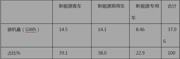 根据动力电池应用分会研究部提供的数据显示,2017年新能源汽车动力电池装机量为37.06GWh。其中,纯电动客车动力电池装机量为14.5GWh,占比39%,以微弱优势领先于乘用车市场装机量。