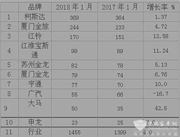 按目标客户用途划分2018年1月考斯特客车销量统计表