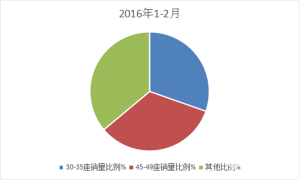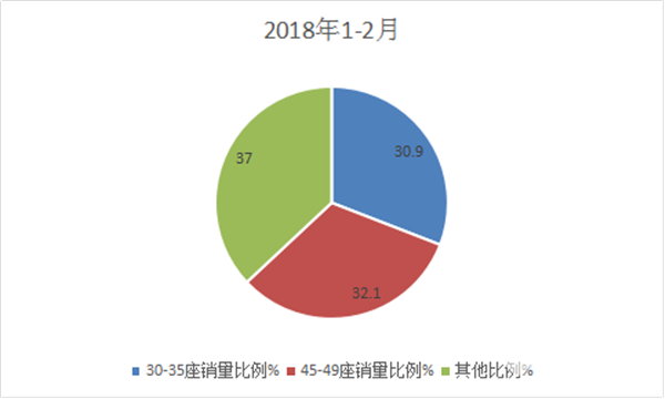 2)2016年1-2月-2018年 1-2月,45-49座的销量及占比均出现连续下降的现象。