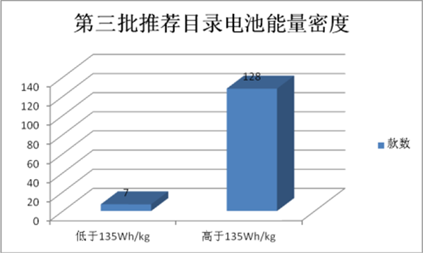 根据统计,本批次推荐目录135款纯电动客车产品(不含插电式和燃料电池客车及快充倍率数据)中,共有128款产品的电池系统能量密度超135Wh/kg,占比近95%
