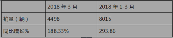 特点一:销量同比均出现“暴增”---3月销量同比增长近2倍,一季度累计销量同比增长近3倍