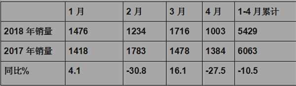 2018年4月校车及其他目标细分市场销量同比统计表: