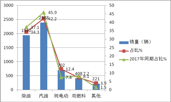 根据最新上牌数据统计。2018年前4月,河南区域轻客按动力种类划分销量结构统计表:
