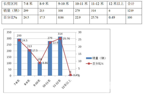 特点一、11-12米是7米以上大中客市场主打车型,其次是7-8米