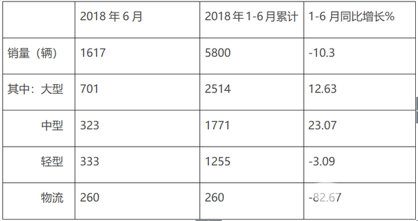 2018年6月及上半年“三龙两通”客车销量评析