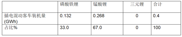 特点三:插电式混合动力客车中,锰酸锂电池占比67%,为最大