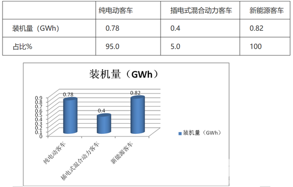 2、 插电式混合动力客车装机量为0.4GWh,占比只有5.0%,处于不大的从属地位。