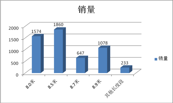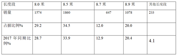 特点三:8-9米公路车型中,8.5米左右长度段销量最大,且同比权重在加大;其次是8.0米,再次是8.9米,最少的是8.7米