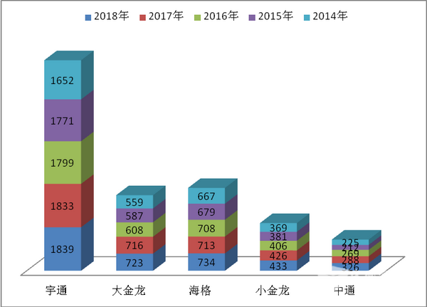 2、宇通始终是8-9米公路客车老大,处于盟主地位。