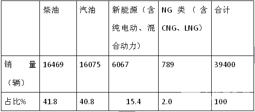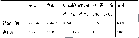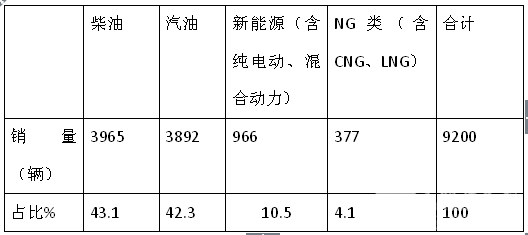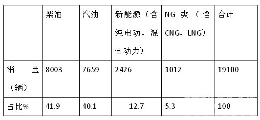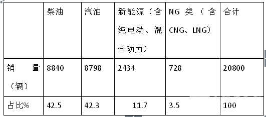 根据上牌信息统计,2018年1-6月中南版块按照发动机种类划分销量结构表