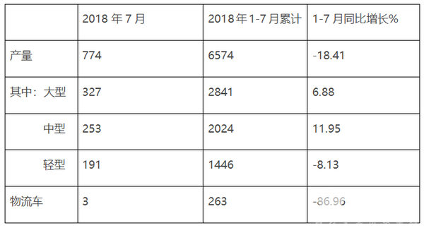 根据厦门金龙汽车集团股份有限公司董事会8月4日发布的产销快报,2018年7月及1-7月金龙汽车客车产销数据表: