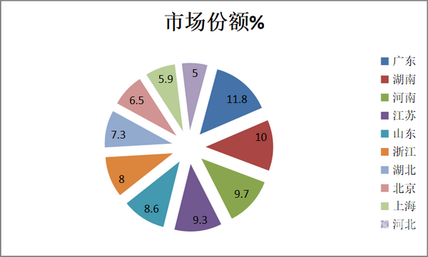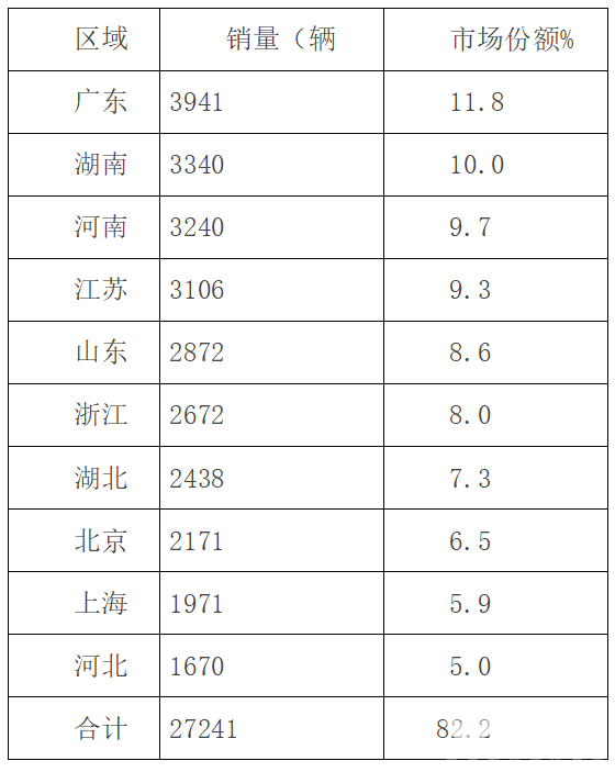 上图表表明,2018年1-6月新能源公交客车区域流向分布极为不均衡,前10名主流区域市场占据了近82.2%的市场份额。垄断程度很高。
