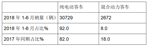 2018年前6月新能源公交客车按动力种类划分销量结构