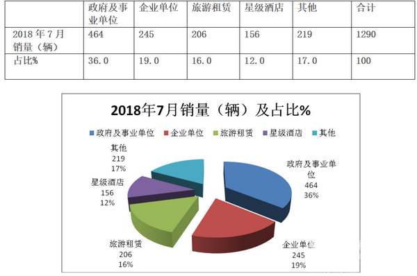 按目标客户用途划分2018年7月考斯特客车销量统计表