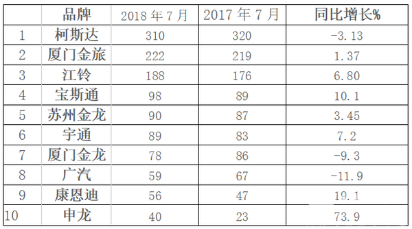 根据最新上牌数据统计,2018年7月考斯特客车主要竞品销量表: