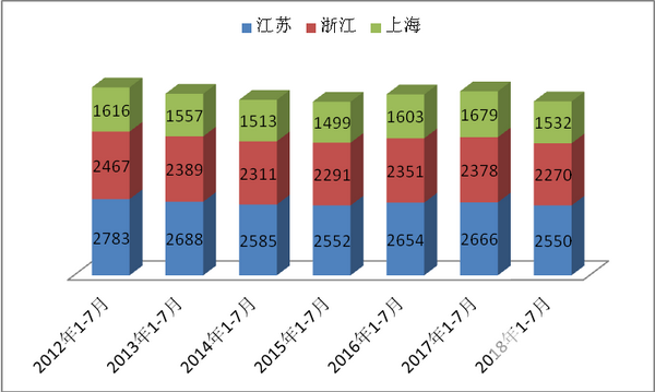 2、江苏、浙江、上海三区域均遵从了上述同样的而规律。2018年同比上海下降幅度最大。