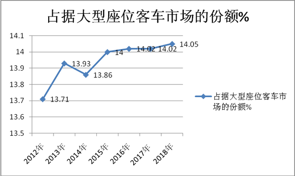 2、 苏州金龙客车江浙沪地区的座位客车市场份额已超过14%的市场分,占据了老二的地位,并且有呈现逐年上升的态势。