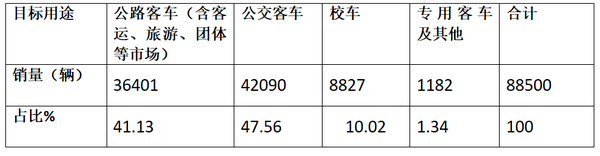 按目标用途划分,对2018年前7月客车销量结构分析(表1)