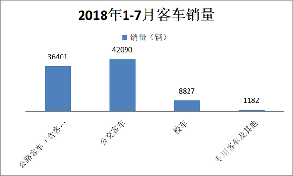 从上图表可知,公交客车是2018年1-7月大中客销量权重最大的车型,其次是公路客车车型(含旅游、团体及客运),再次是校车,最小的是专用客车车型。
