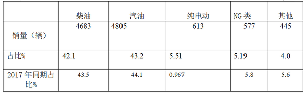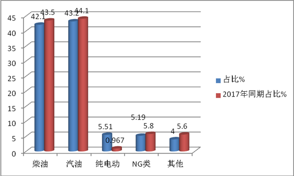 2、纯电动客车占据了5.51%的权重,比2017年同期提高了近4.6个百分点,也是所有细分市场中增幅比例较大的细分市场。