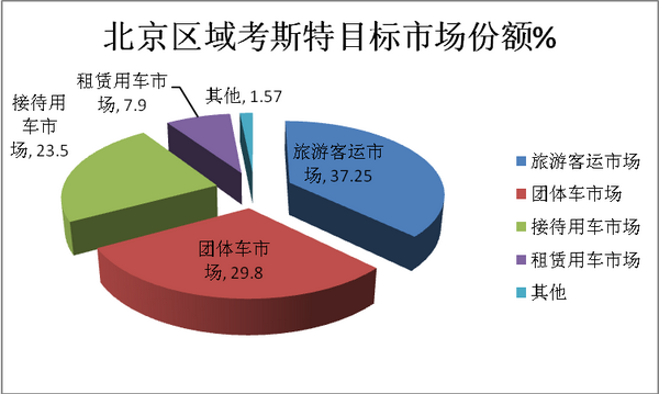 1、根据市场调研,京津唐区域购买考斯特汽油机的主要目标客户是机关、团体,而购买柴油动力的目标客户大部分为跑旅游客运的客户。现在根据调研统计,根据实际终端销售情况,将考斯特产品分为国产仿考和川考两种类型。
