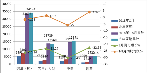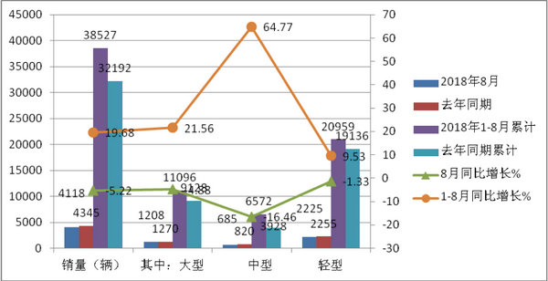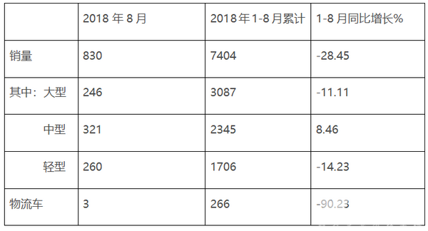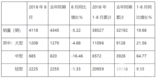 根据中通客车9月6日发布的最新公告,2018年8月及1-8月销量数据如下: